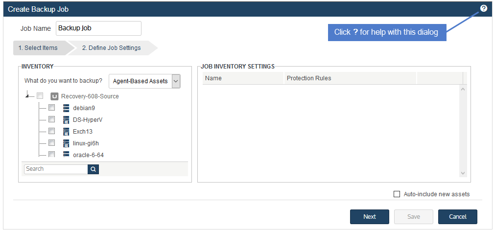 While working with the dialogs in the UI, click the ? in the upper-right corner for detailed instructions. Example:
