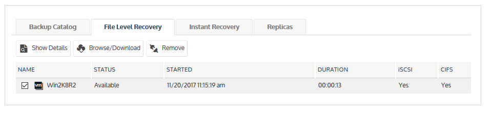 1. In the appliance UI, select Recover and click the File Level Recovery tab.