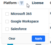 - The view can be filtered by both platform and organization.