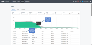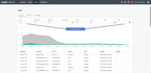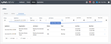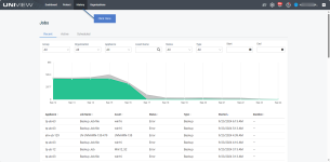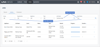 The Recent jobs view displays recent jobs across all Unitrends appliances that have been added to your backup.net instance. (To filter the display, see