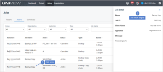 - If initiated by a UniView backup policy, the job name for backups is either "UV-AssetName" or "UniView-AssetName", the job name for hot copies to the Unitrends Cloud is "UVHC-AssetName", and the job name for cold copies to a third-party cloud target is "UVCC-AssetName".