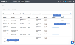 The Active jobs view displays all jobs that are currently running across all Unitrends appliances that have been added to your backup.net instance. To change the sort order of the display, click any column heading. (To filter the display, see Filtering the Active jobs view.)
