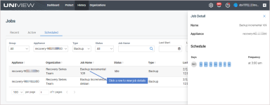The Scheduled jobs view displays job schedules across all appliances that have been added to your backup.net instance.