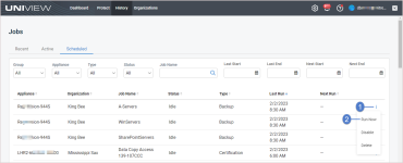 NOTE To create a job, see Working with Unitrends Appliances, Assets, and Backups.